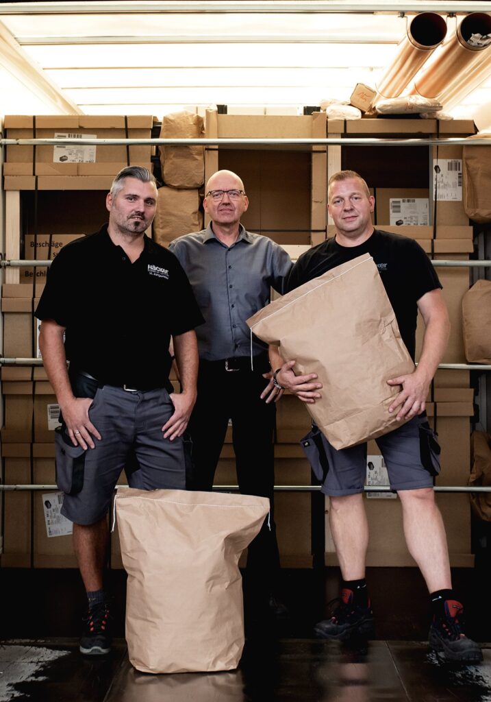 Por lo general, se utilizan bloques de espuma y láminas de poliestireno durante el transporte para asegurar una carga de alto valor como muebles o electrodomésticos. Häcker ha encontrado una forma mejor y más ecológica: Los palets de la empresa están equipados con resistentes bolsas de papel llenas de residuos de cartón para inmovilizar la carga.